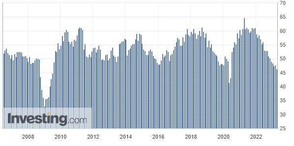 这也是该指标持续第五个月在50荣枯线下方,表白该行业正处于缩短。若剔除新冠疫情年夜风行期间的数据,3月的制造业PMI将创2009年以来新低。