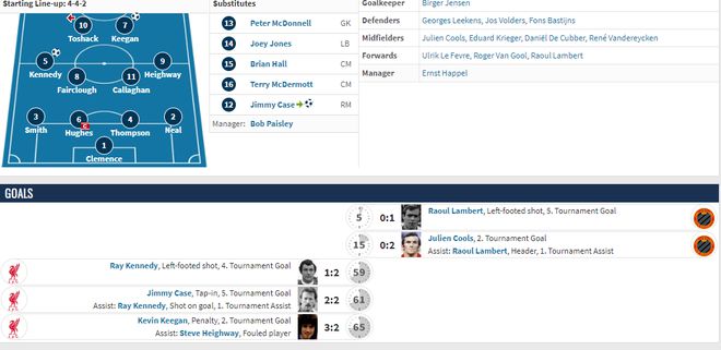 布鲁日。如果你地舆不敷好,你可能连布鲁日在哪都不知道。作为比利时最成功的俱乐部之一,布鲁日队曾杀入过1975/76赛季的联盟杯决赛。但他们的命运不是很好,赶上了利物浦,首回合客场两球领先的年夜好场面地步下被利物浦完成逆转,最终2:3输球。
