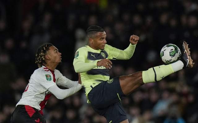 南安普稽首发433阵型,阿尔卡拉兹、苏莱曼纳、沃尔科特三先锋,中场埃尔尤努西、普劳斯、拉维亚,四后卫彼得斯、贝拉、贝德纳雷克、奈尔斯,门将巴祖努。首发十一人总身价也有2亿欧元。角逐开场后,曼城反宾为主睁开攻势。