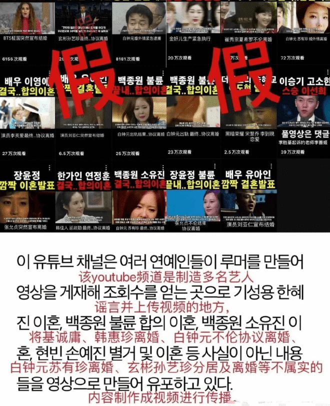 玄彬掮客公司VAST娱乐暗示,比来Youtube上呈现了年夜量有关玄彬与孙艺珍的假新闻,称玄彬海外赌钱导致孙艺珍财富受损,两人已经离婚,截至20号上午,该视频的点击数已经跨越了30万次。今朝玄彬公司已经要求Youtube删除这些假新闻。
