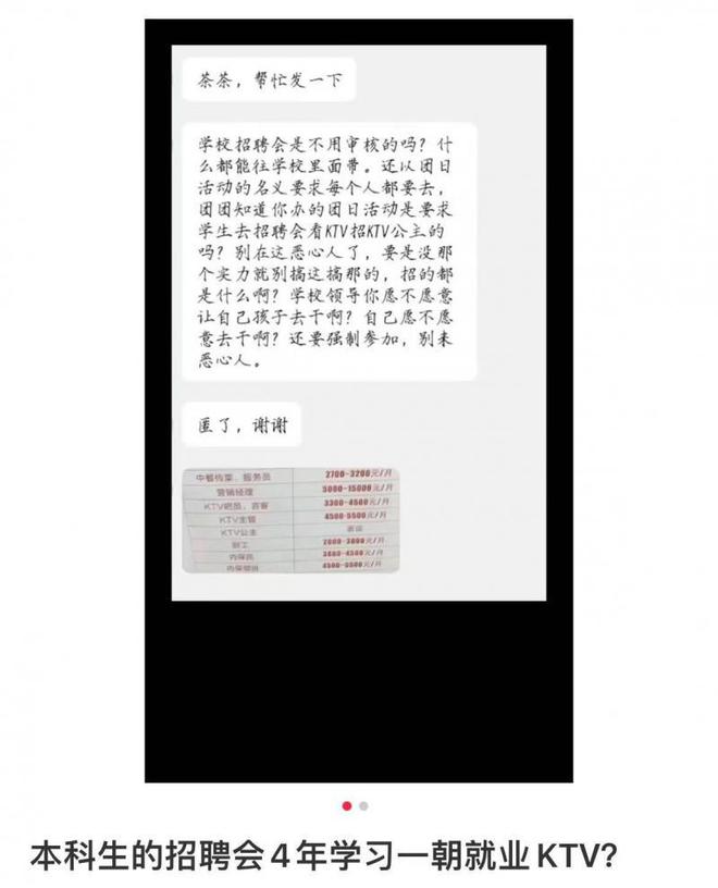 近日,有网友反映,福建农林年夜学安溪茶学院的校园雇用会上,有酒店雇用KTV公主。4月4日,当事黉舍为此发文道歉,并暗示网传的“KTV公主”岗亭系未审核的岗亭,涉事酒店未经许可擅自增添到雇用会现场展示的易拉宝上,黉舍发现责成涉事企业撤消该岗亭。涉事酒店人事部也暗示,未在黉舍雇用KTV公主,只是雇用餐饮相关岗亭,关于易拉宝上呈现KTV公主的环境已与黉舍对接过了。